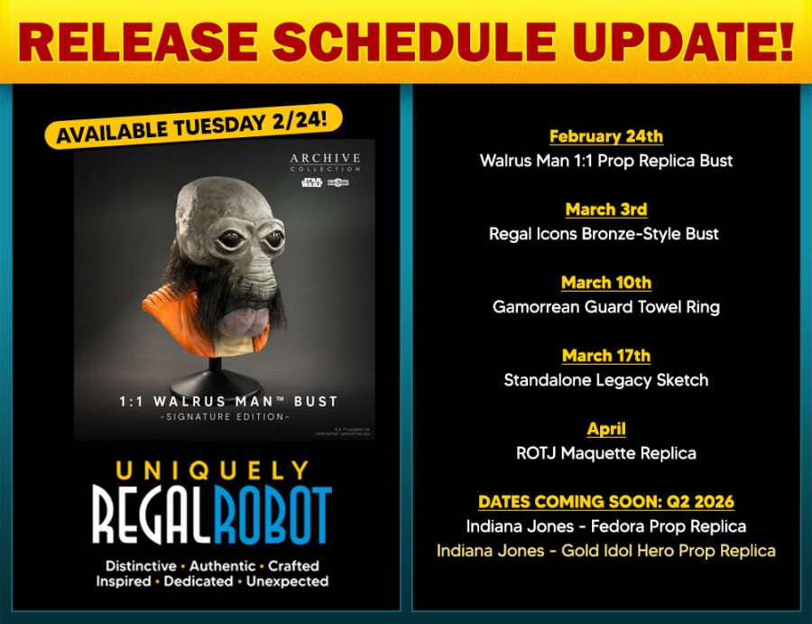 UPDATED FOR 2026! He’s a look at some release dates for upcoming creations from Star Wars™, Indiana Jones™ and more! Stay tuned as we reveal more information and first look imagery in the coming weeks and months.