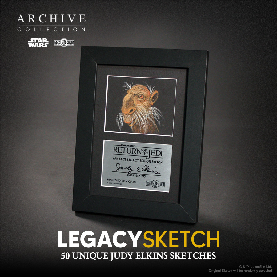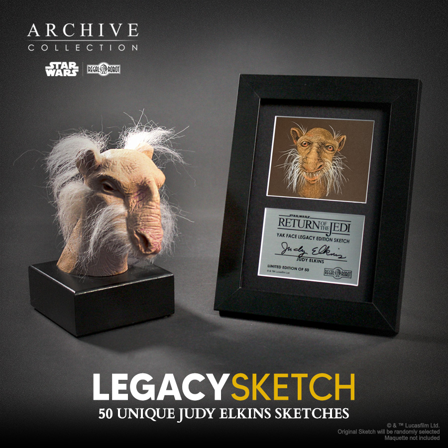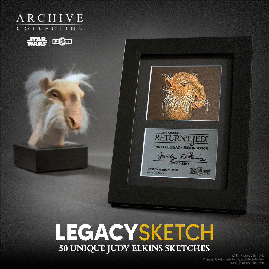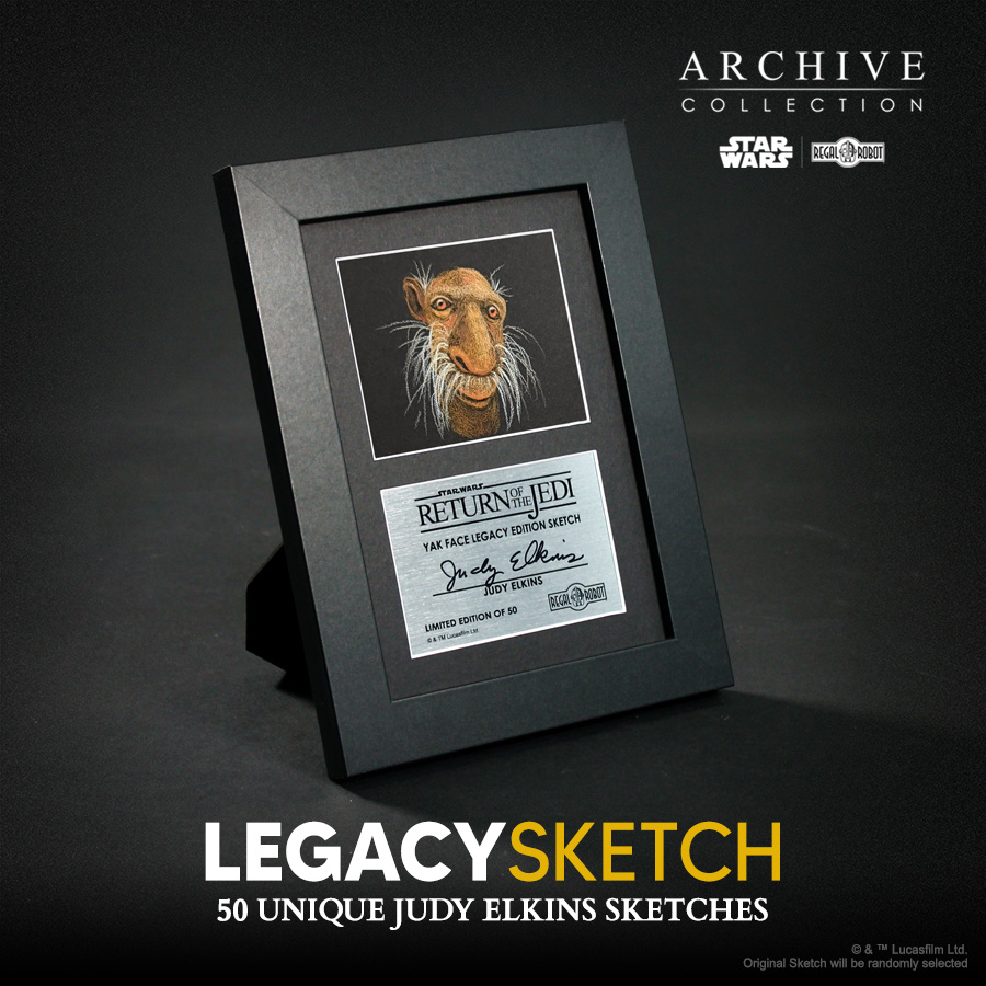 This very limited Yak Face Legacy Sketch by Judy Elkins is a special opportunity for fans to bring home a truly unique work-of-art from one of the key sculptors in the Star Wars: Return of the Jedi™ creature shop!